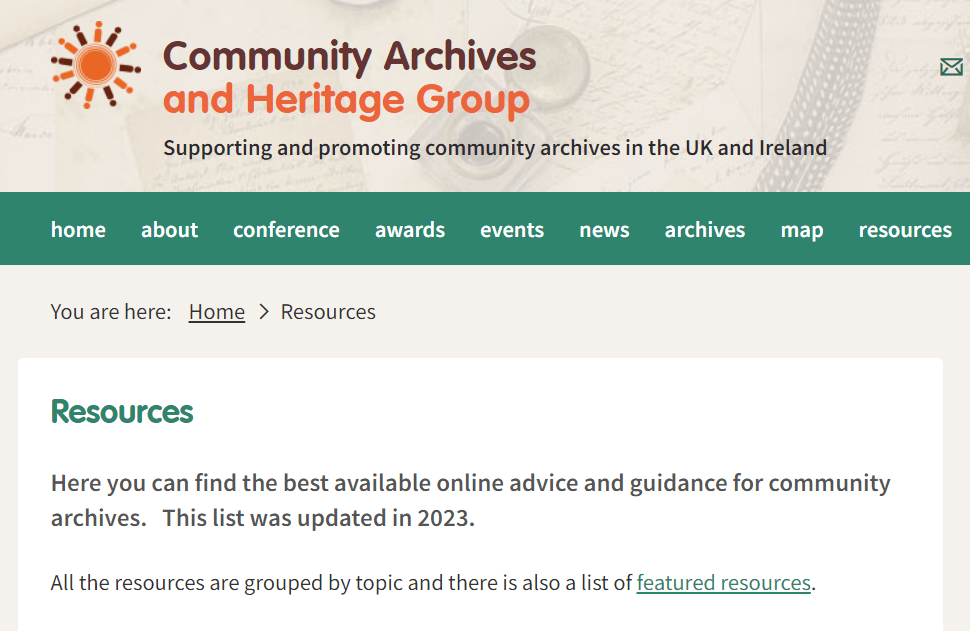 This website from the Community Archives and Heritage Group has an incredible array of guidance and resources available for groups seeking information on how to collect, manage, promote and obtain funding for archives.